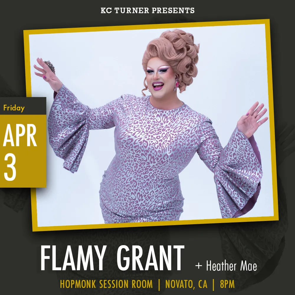 KC Turner presents Flamy Grant + Heather Mae live at the Session Room at HopMonk Tavern, Novato, for a powerful night of music and storytelling. Award-winning, Billboard-charting artist Flamy Grant is a singing-songwriting drag queen known for blending country, folk, gospel, and roots music into a theatrical and uplifting performance. Her 2024 album CHURCH reached […]